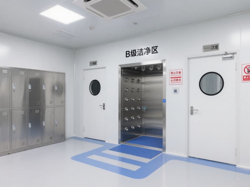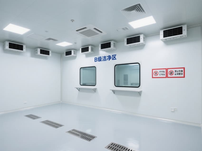 頂部嵌入式高效送風(fēng)口形成垂直層流,配合側(cè)下回風(fēng)系統(tǒng)實(shí)現(xiàn)每小時(shí)15-25次空氣置換,恒溫恒濕系統(tǒng)精準(zhǔn)控制溫度(18-26℃)、濕度(45-65%)。不銹鋼潔凈門窗與傳遞窗采用高氣密性密封結(jié)構(gòu),嵌入式LED潔凈燈提供≥300lux均勻照明,全方位營造安全、精準(zhǔn)的生物制藥生產(chǎn)基礎(chǔ)環(huán)境。