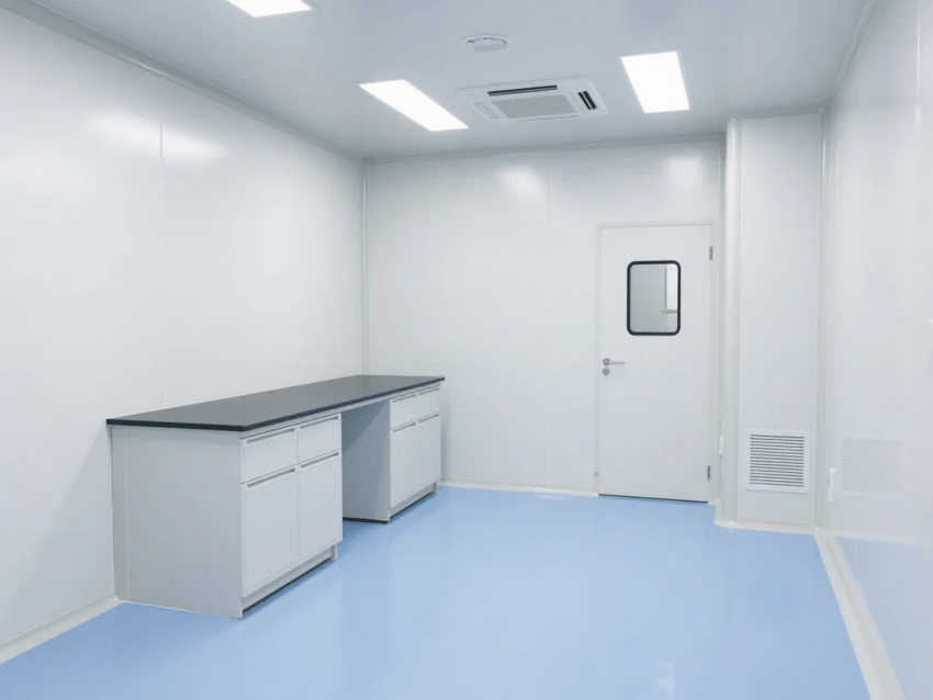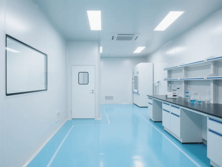 本方案采用生物科技極簡風(fēng)格,嚴(yán)格遵循ISO14644-1Class6潔凈標(biāo)準(zhǔn)。空間以純白抗菌彩鋼板墻體與淺藍(lán)環(huán)氧樹脂地坪構(gòu)建主體框架,營造純凈、高效的檢測環(huán)境。墻體采用50mm厚醫(yī)療級(jí)抗菌彩鋼板,所有接縫處采用R30mm圓弧處理工藝,確保無衛(wèi)生死角。淺藍(lán)環(huán)氧地坪添加防滑顆粒,摩擦系數(shù)≥0.6,同時(shí)具備優(yōu)異的耐化性。
