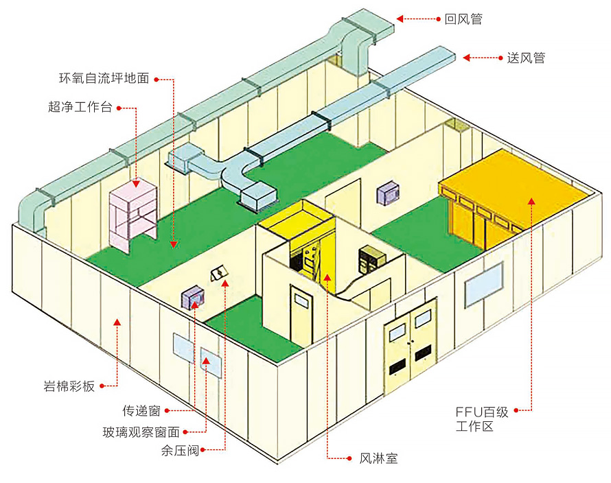 潔凈廠房亦名潔凈室、超凈間、無菌車間、凈化房等,定義為將一定空間范圍內(nèi)空氣中的微塵粒子,有害空氣,細菌等污染物排除,并將室內(nèi)之溫濕度、潔凈度、室內(nèi)壓差、氣流速度與氣流組織、噪音震動及照明、靜電等控制在一定范圍內(nèi),而所給予特別設(shè)計的密閉空間。