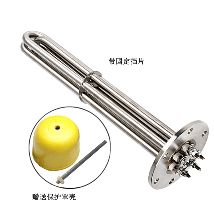 法蘭式加熱管是由多支加熱管焊接在法蘭上集中加熱。主要用于敞開式、封閉式的溶液箱和循環(huán)系統(tǒng)中加熱用。法蘭式不銹鋼加熱管高度密集式、結(jié)構(gòu)緊湊。由于整體短而密集,故穩(wěn)定性好,安裝無需支架。組合式大多采用氬弧焊接方式使電熱管于法蘭連接,也可利用緊固裝置的形式,即每支電熱管上焊由緊固件。然后與法蘭蓋采用螺母鎖緊。管子于緊固件采用氬弧焊接,永不泄漏。緊固件密封處采用科學(xué)的工藝。單支更換極為方便,大大節(jié)約以后的維修成本。