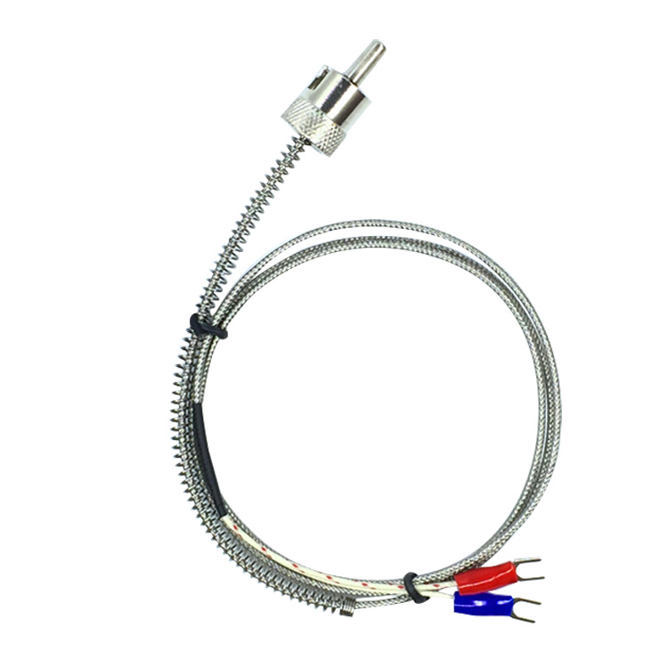 卡簧熱電偶帶有軟性延長(zhǎng)導(dǎo)線,可以自由彎曲,具有熱響應(yīng)時(shí)間小,使用方便等特點(diǎn),適用于塑料擠 出機(jī)、輕紡、食品等工業(yè)。