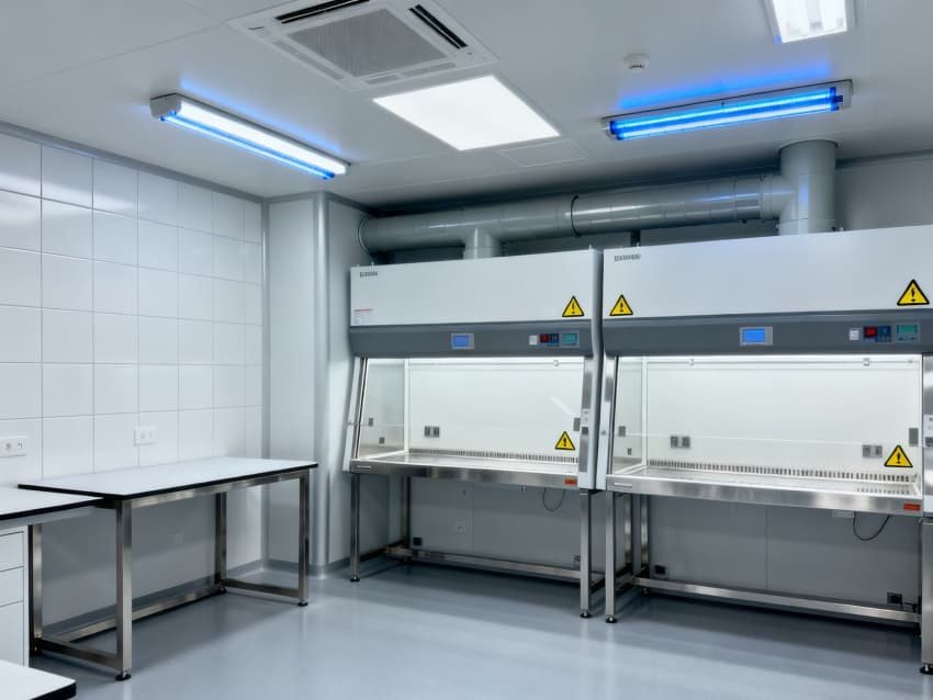 潔凈系統(tǒng)達到ISO8級標(biāo)準(zhǔn),配置頂送側(cè)回高效過濾機組,空氣置換速率達25次/小時,確保塵埃粒子濃度≤352000粒/m³。